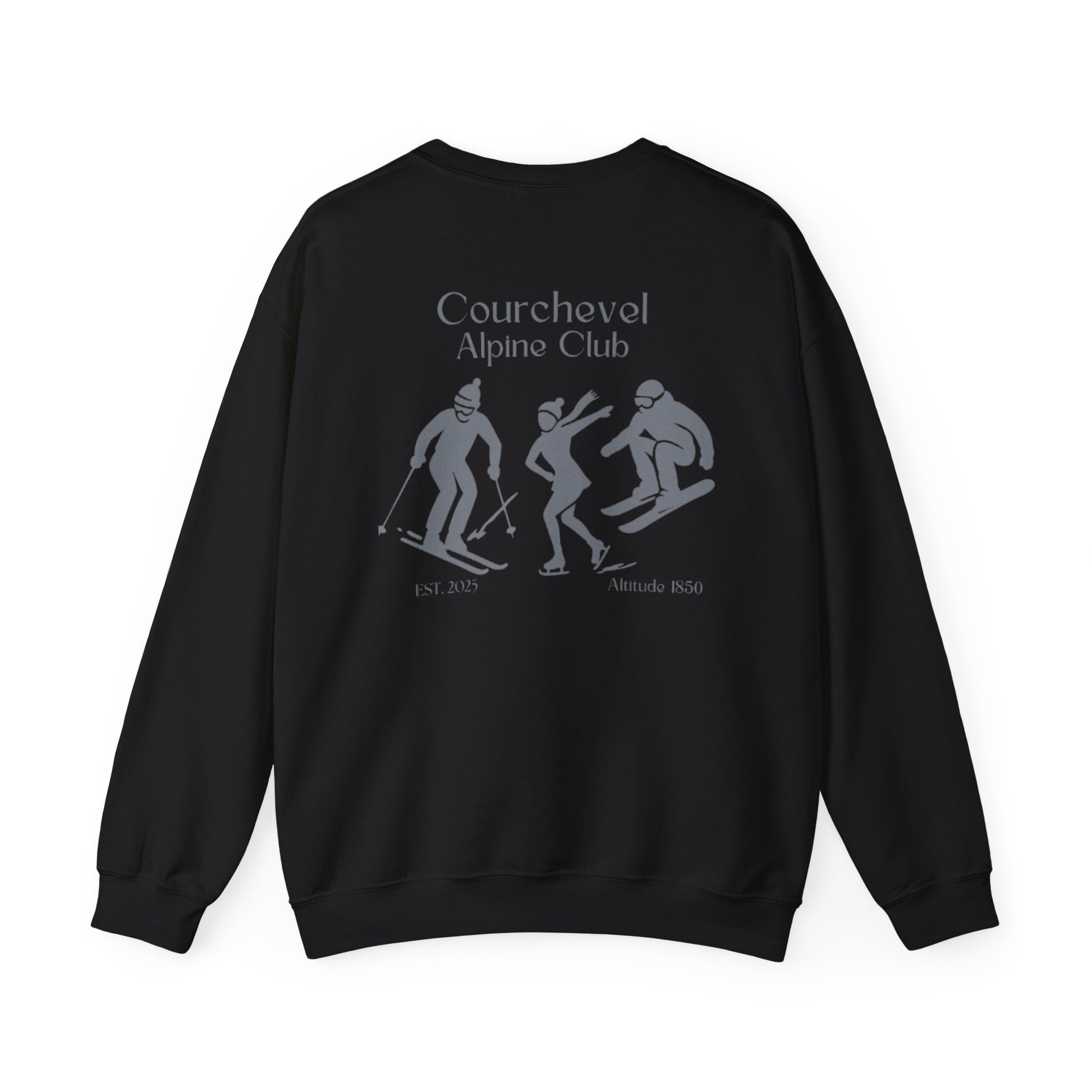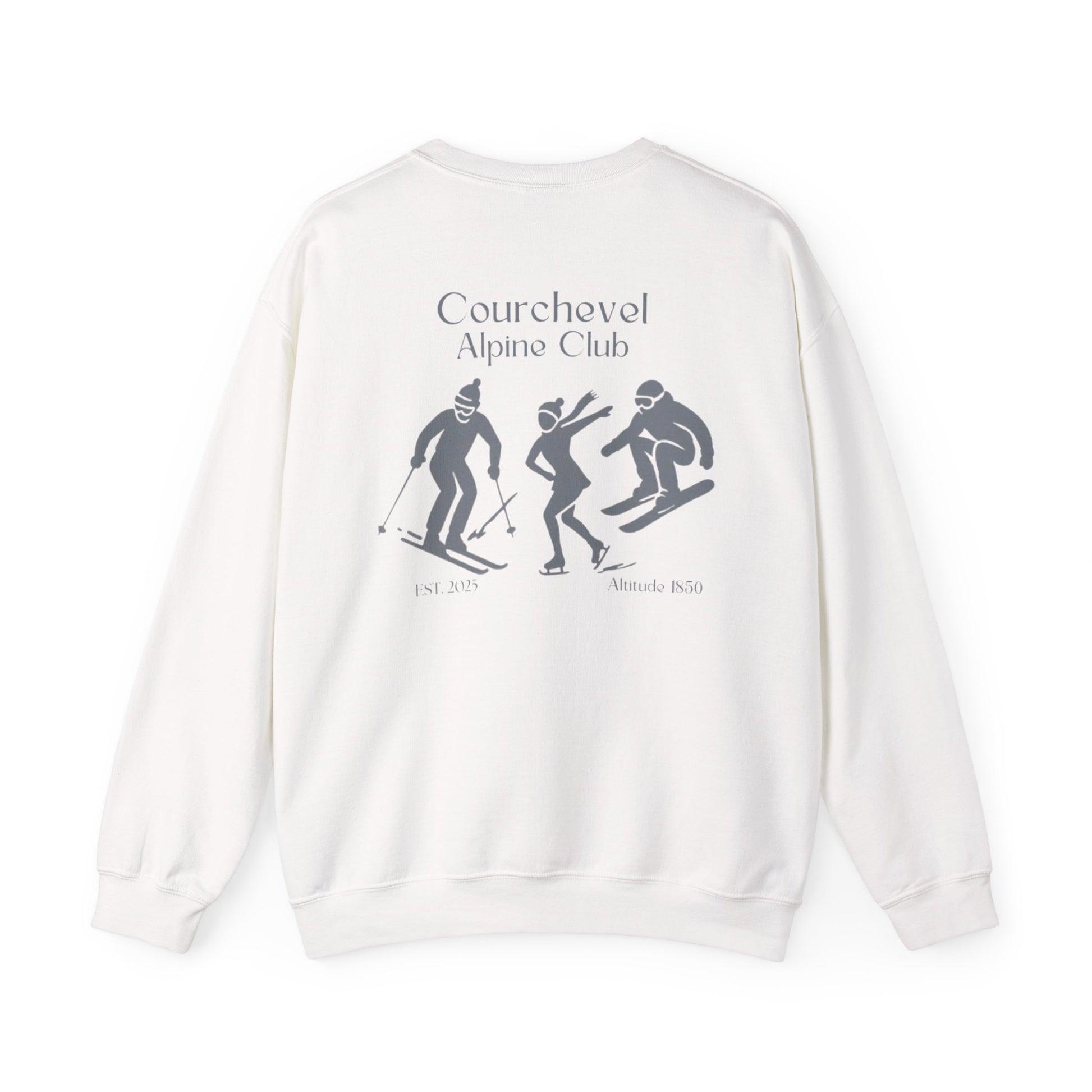 A soft, midweight crewneck that feels like a vintage ski lodge tucked into a modern wardrobe. The sweatshirt wears slightly oversized with a clean crew neckline and durable double-needle stitching that holds up to repeated seasons on and off the slopes. The back features a retro alpine graphic—three skiers in motion with “Courchevel Alpine Club” text—while the small chest embroidery keeps the front minimal. It layers naturally over tees and turtlenecks, and the gentle off-white tone lets the charcoal print stand out without shouting. Ethically sourced cotton and OEKO-TEX dyes give it a thoughtful, lasting finish.
