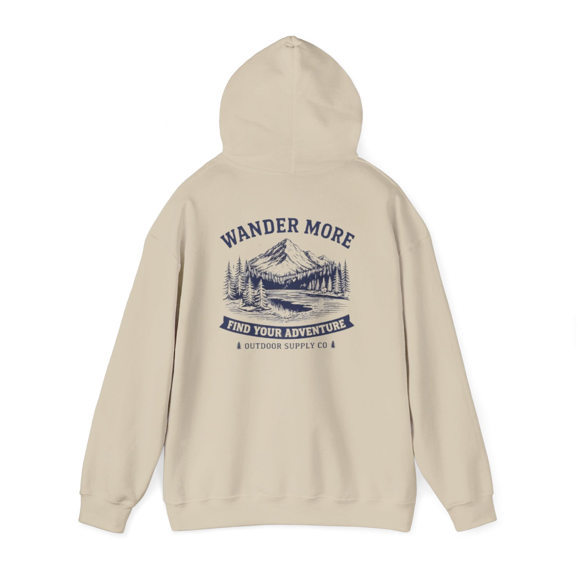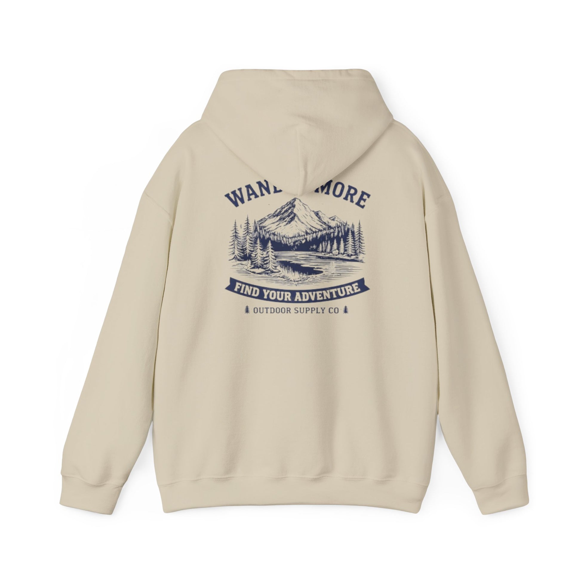 A soft, mid-weight hoodie that feels like a warm exhale after a long trail. This cozy sweatshirt pairs a classic, roomy fit with a clean, outdoors-inspired design: a small chest emblem up front and a hand-drawn mountain and lake scene across the back that reads “Find Your Adventure.” The double-lined hood, color-matched drawcord, and kangaroo pouch keep you comfortable and ready for chilly mornings, campfire evenings, or slow coffee before the first hike. Built from a durable cotton-poly blend with tear-away neck label and responsible sourcing, it wears-in nicely and holds prints and embroidery crisply. Reach for it when you want something rugged but soft — a reliable layer that looks like it’s been on the road with you.